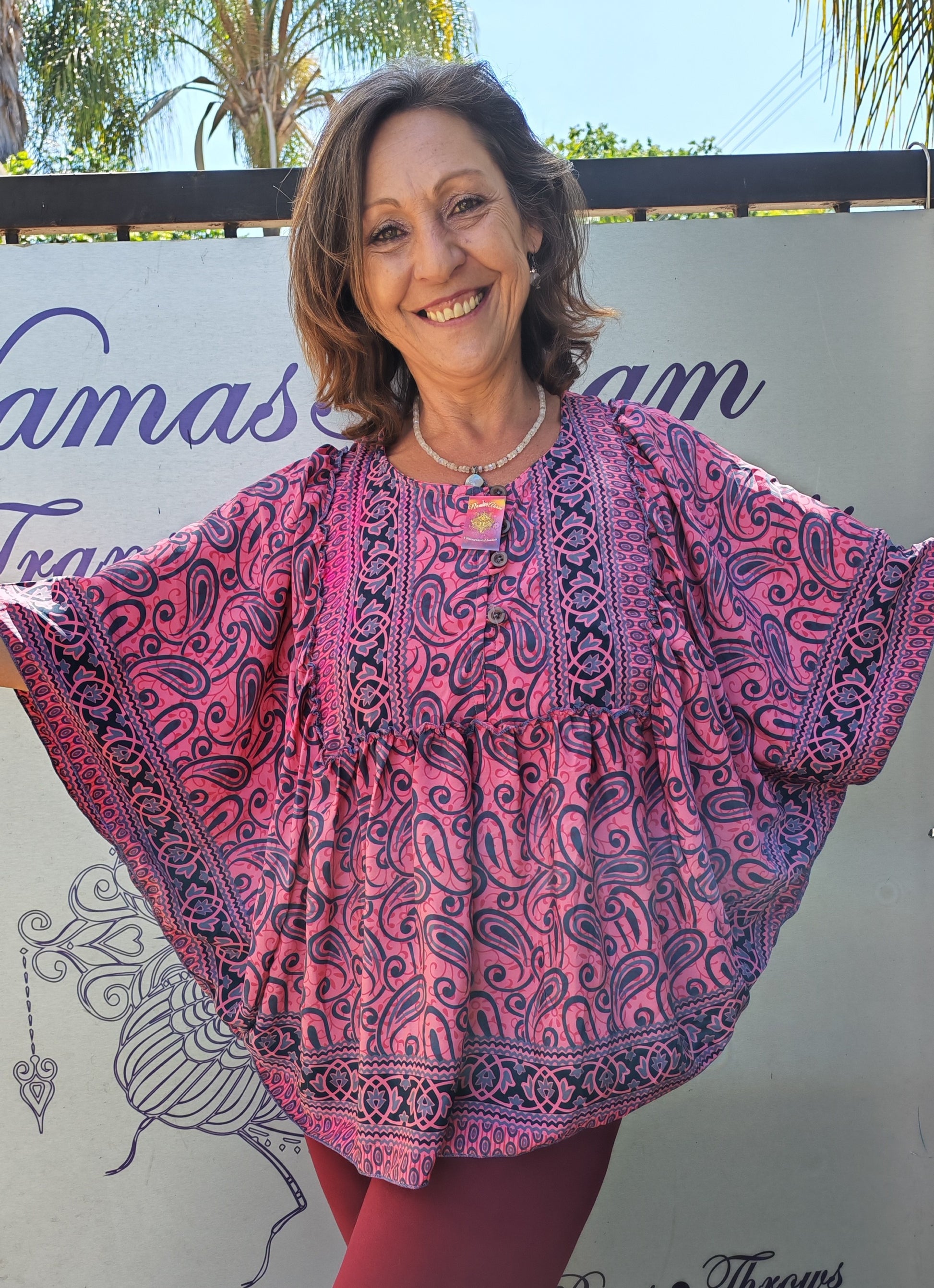 Style her up, play her down. A Batwing silhouette is stylish on many body types. With big, breezy sleeves and a spacious bosom you can pair her with a denim or a skirt or even layering over a dress. Play with your wardrobe.