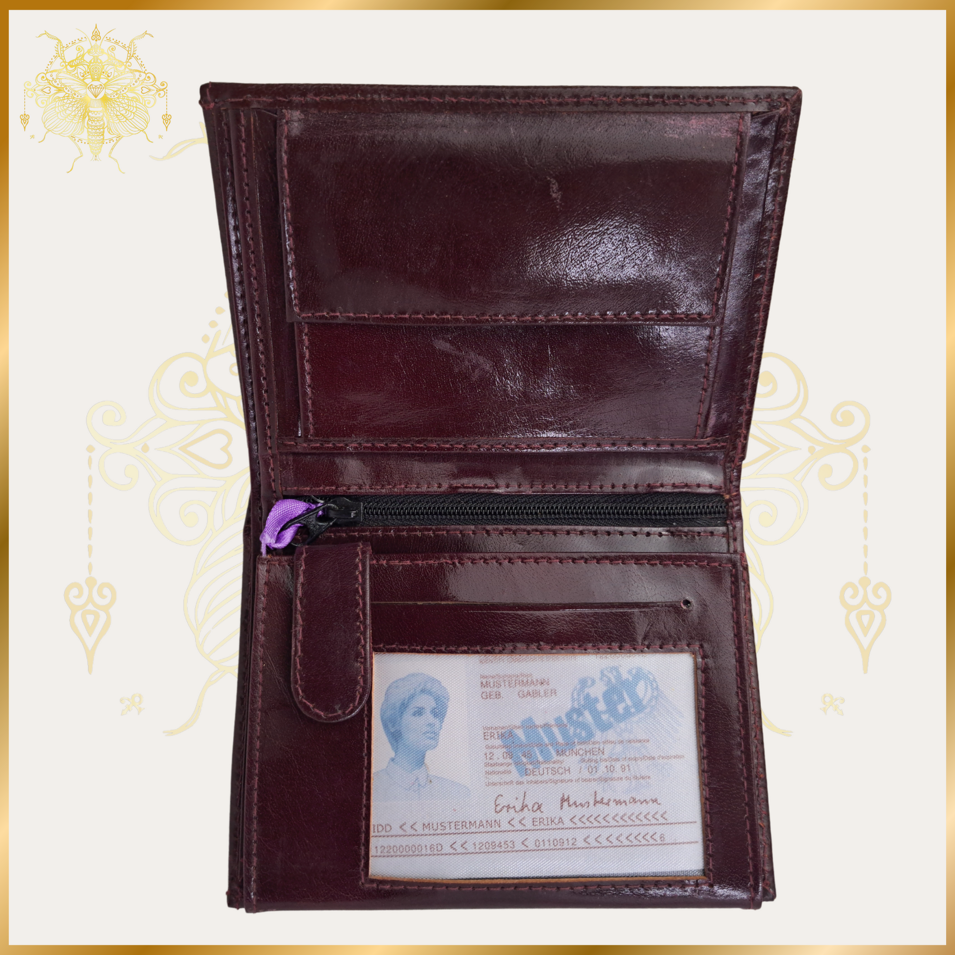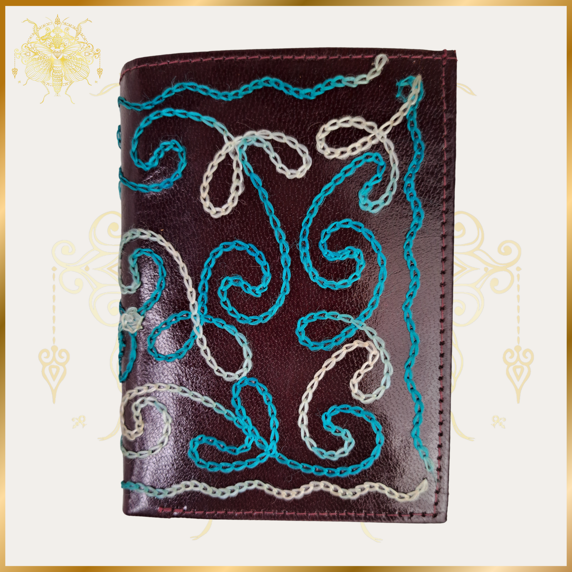 Dark Brown Turquoise White Embroidery Half Purse Leather Wallet