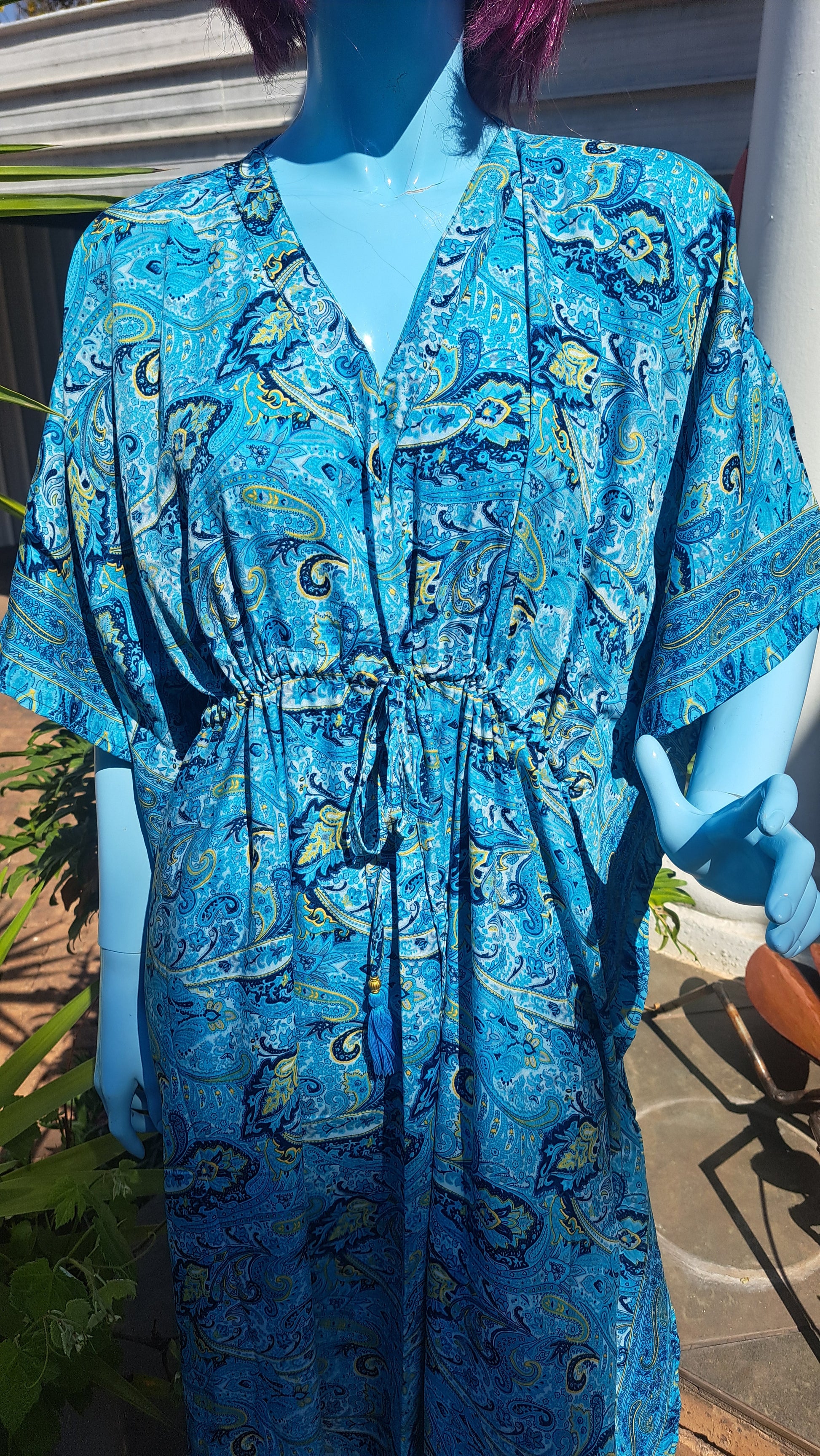 Drawstring waist Kaftan for adjustible fit. Free size comfort, space and freedom.
