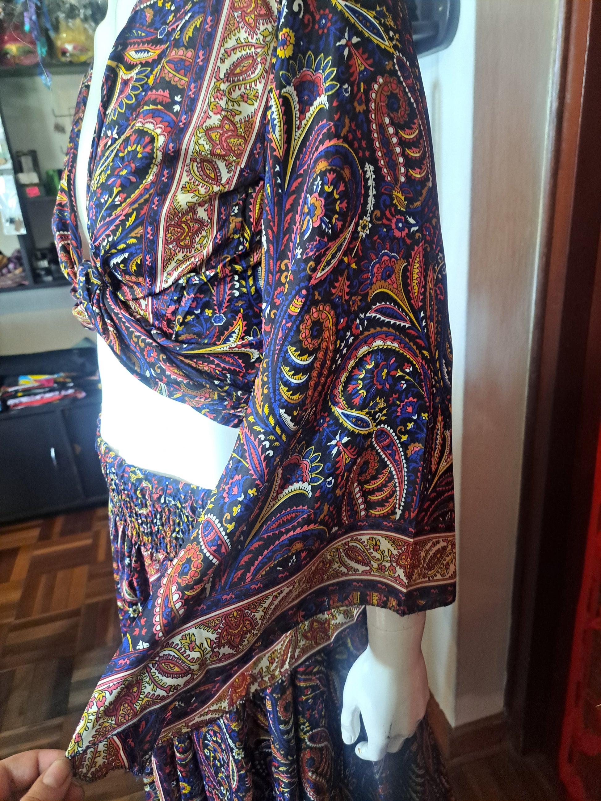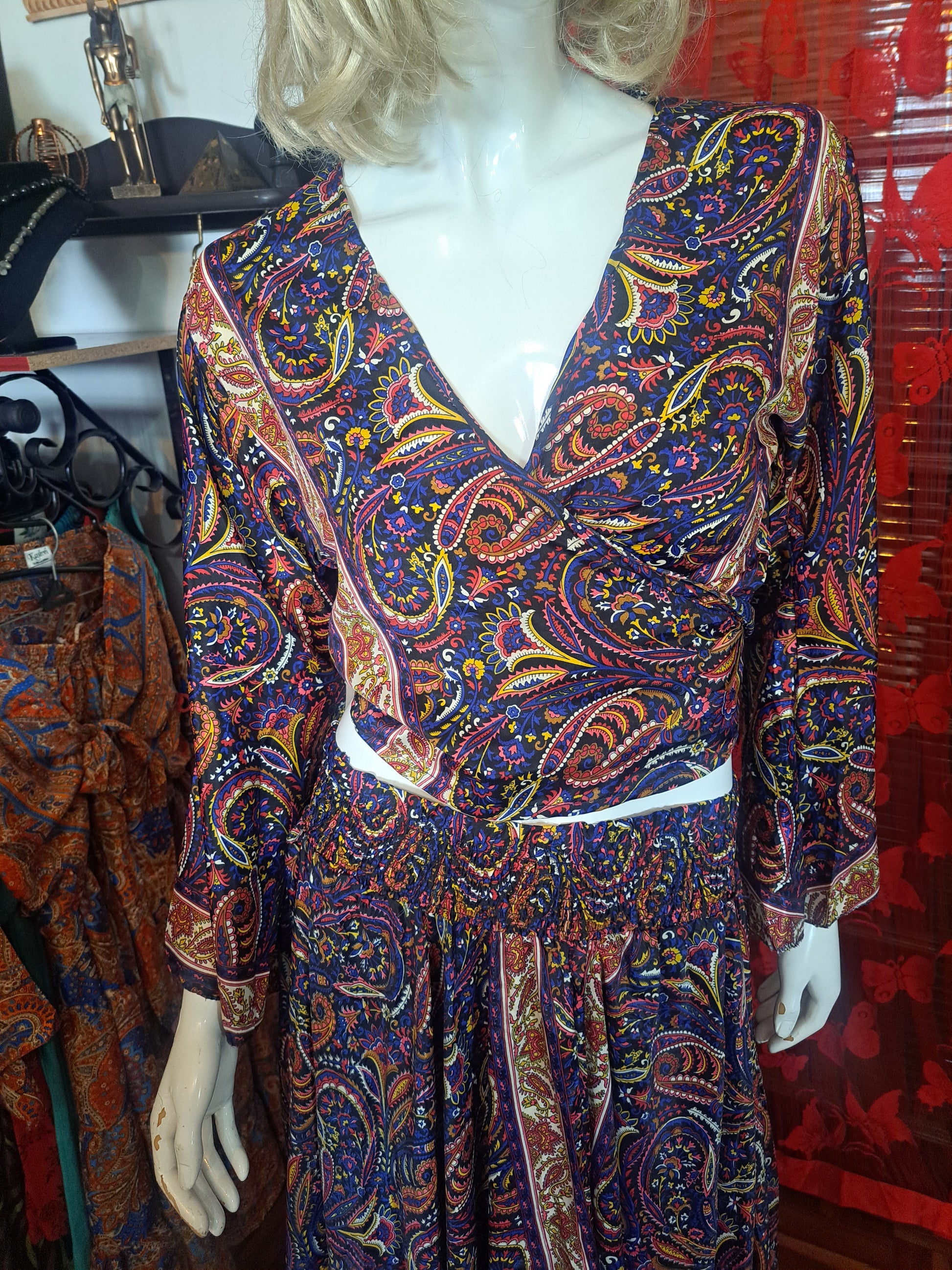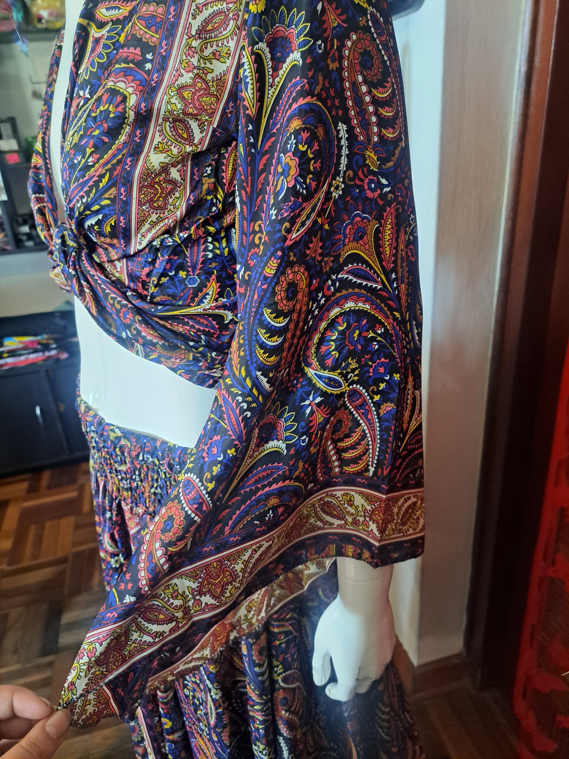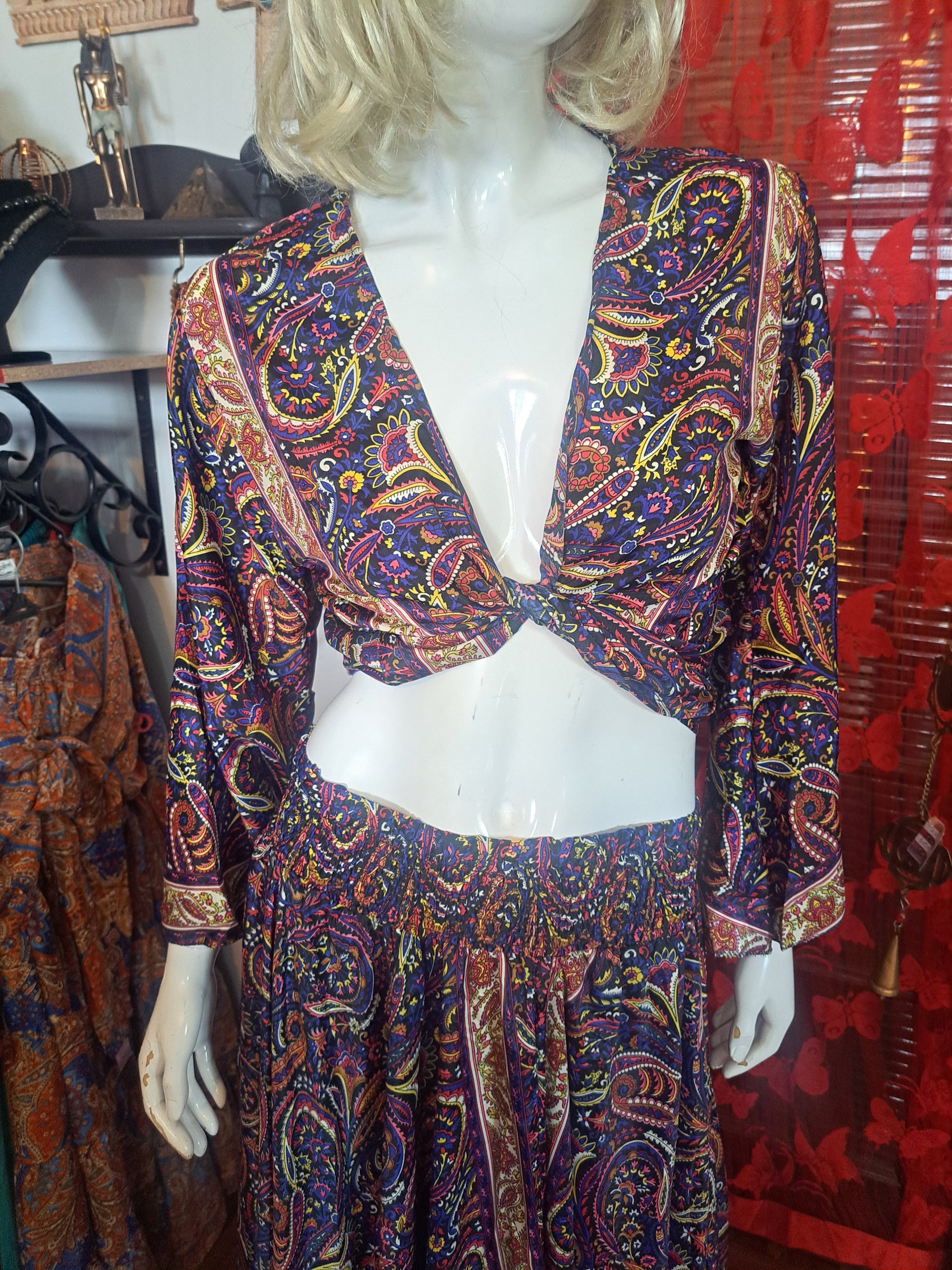 2 pieces for your Boho wardrobe. Use the rouged skirt as a dress on beach days and holidays. Add the tie top and play with your tie methods. So many looks in this silky sensation.