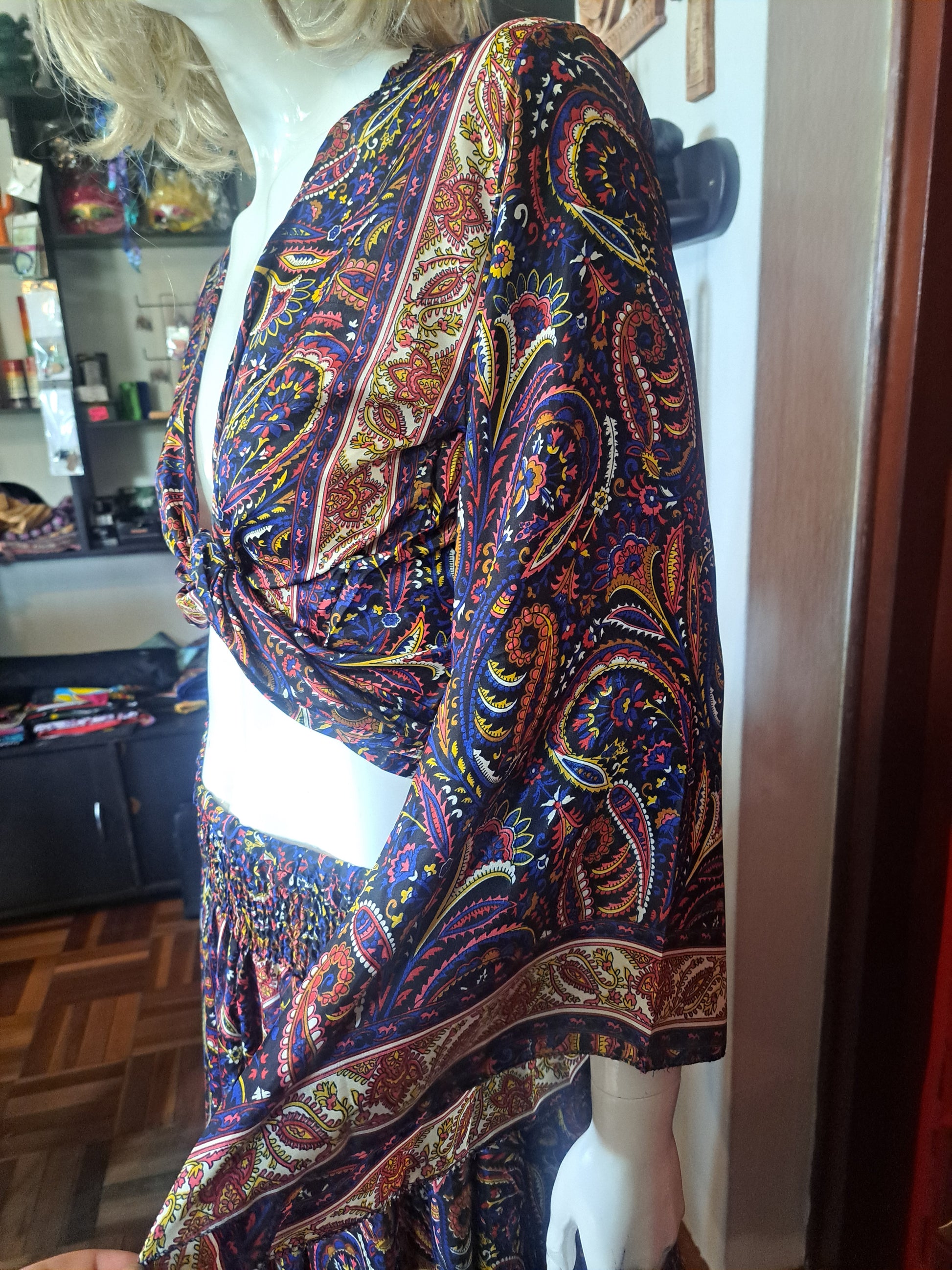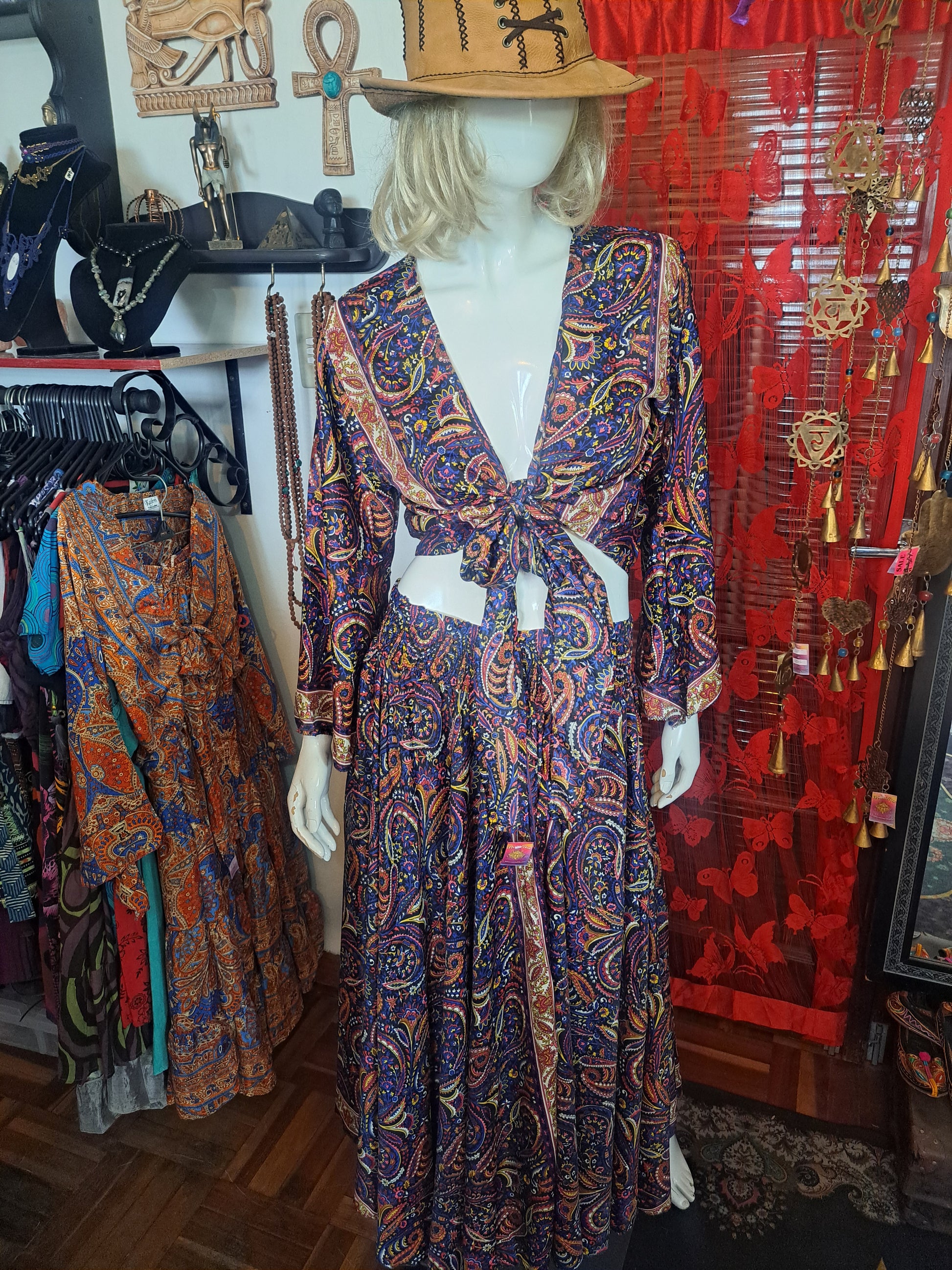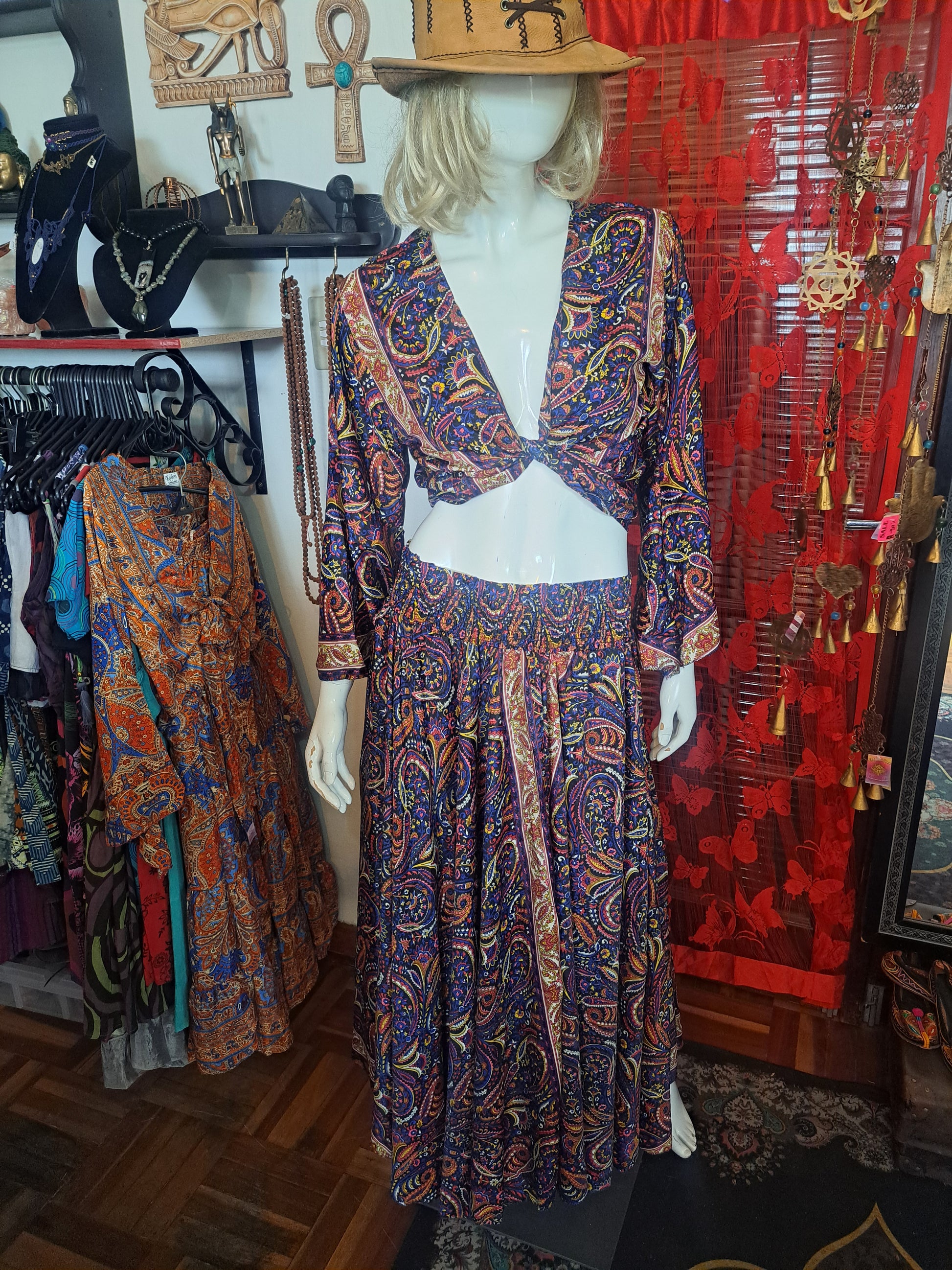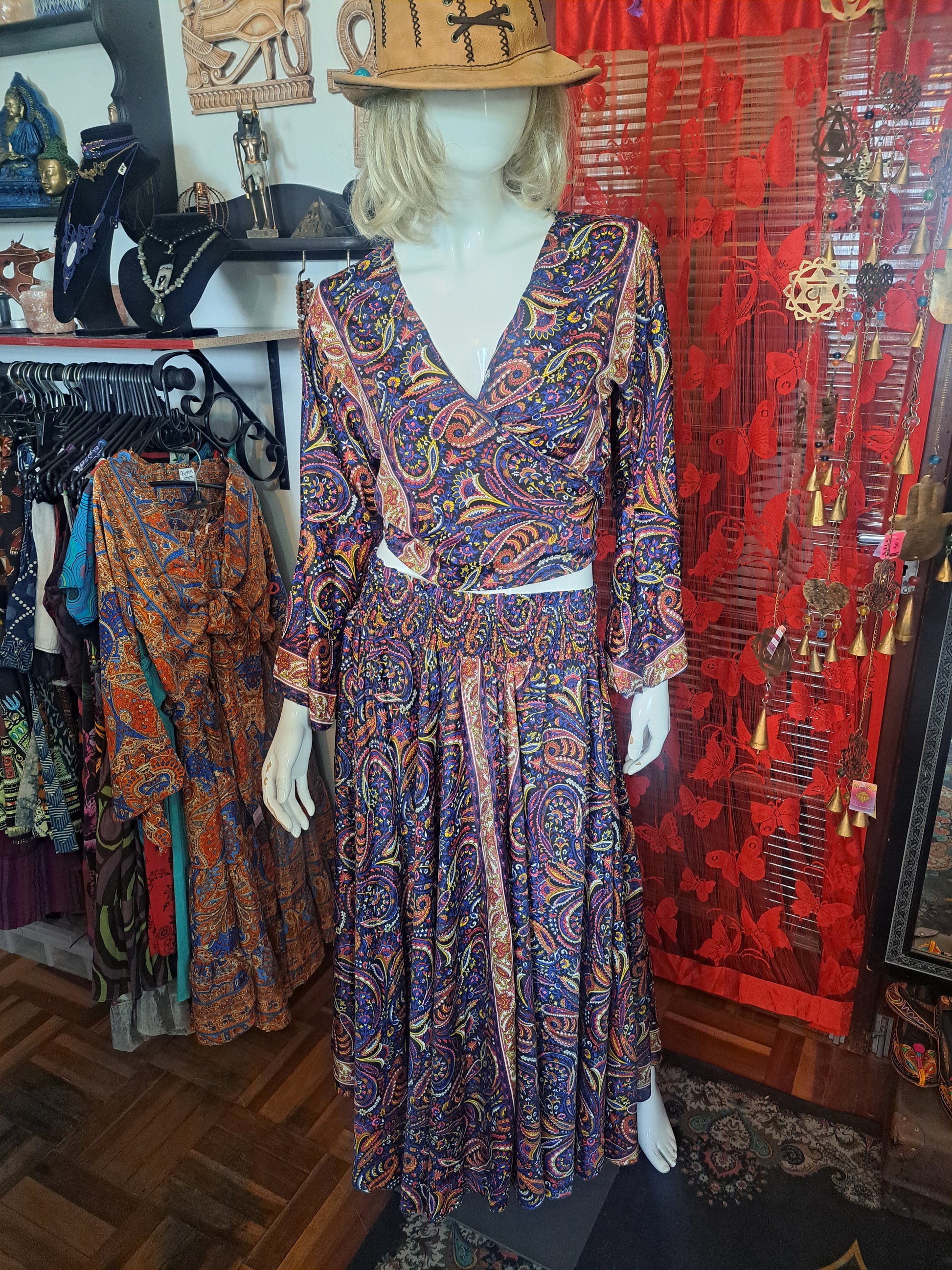 2 pieces for your Boho wardrobe. Use the rouged skirt as a dress on beach days and holidays. Add the tie top and play with your tie methods. So many looks in this silky sensation.