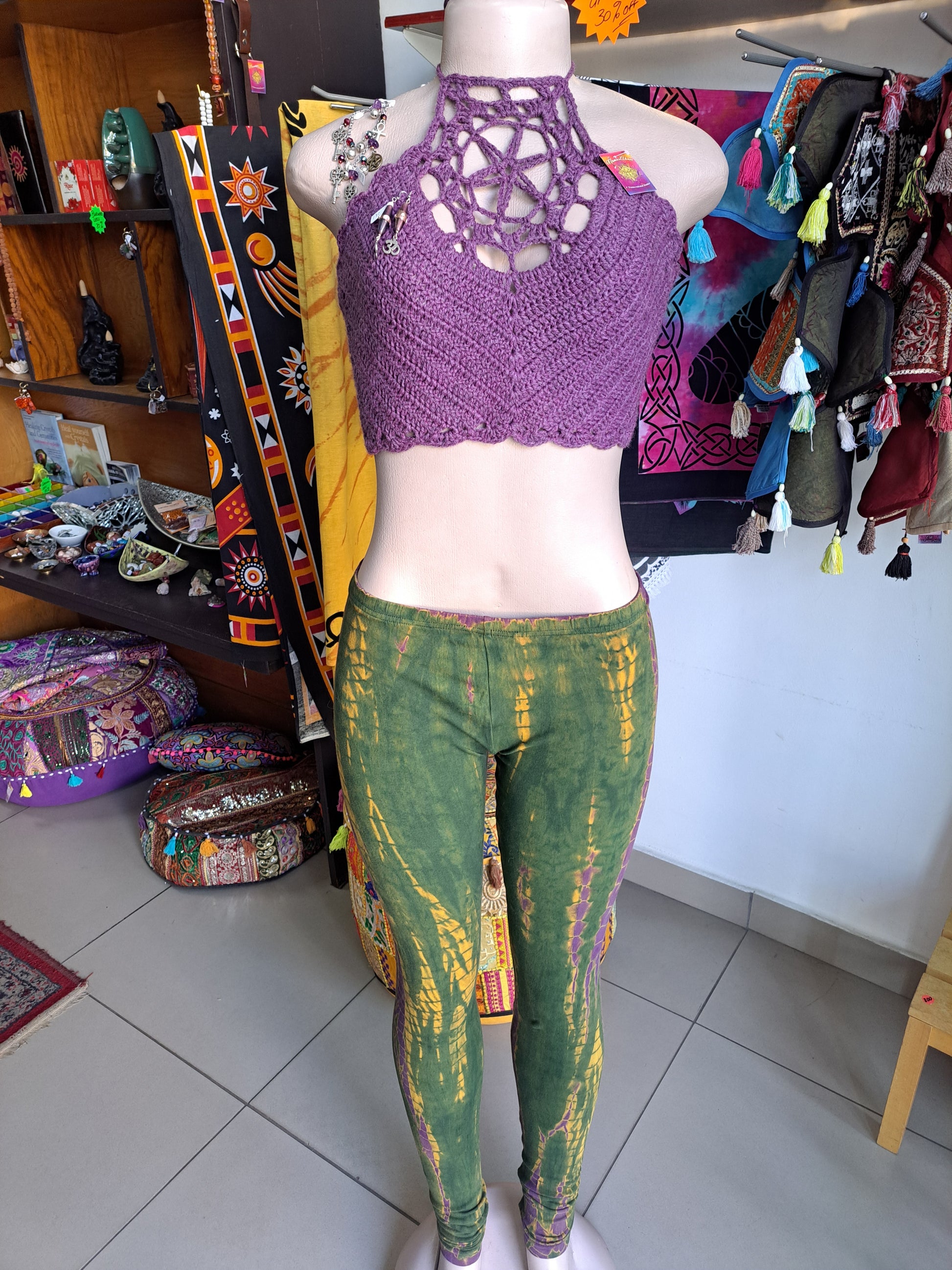 Unique & striking leggings from Nepal. Heavy green and deep purple with splashed of mustard.