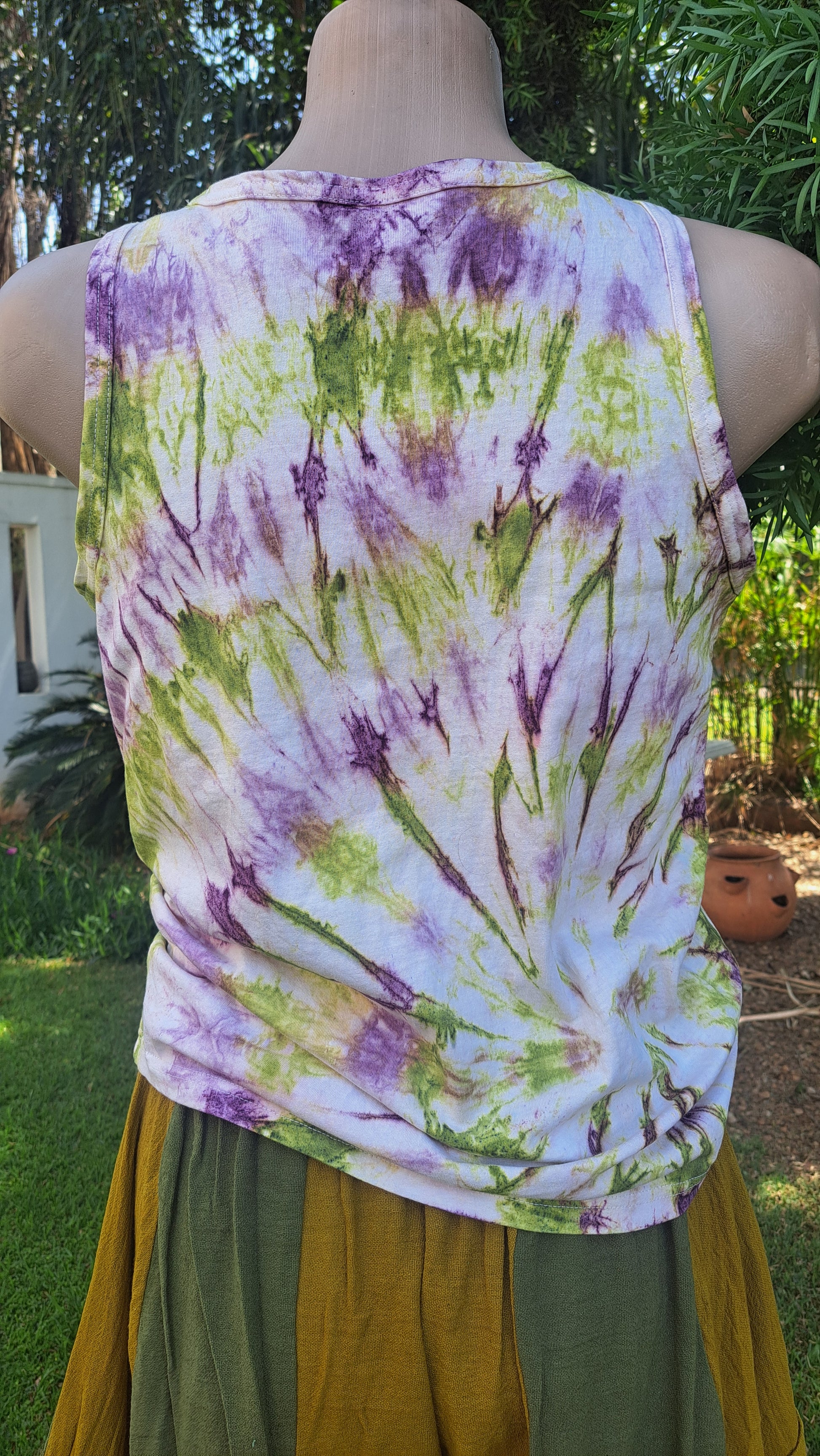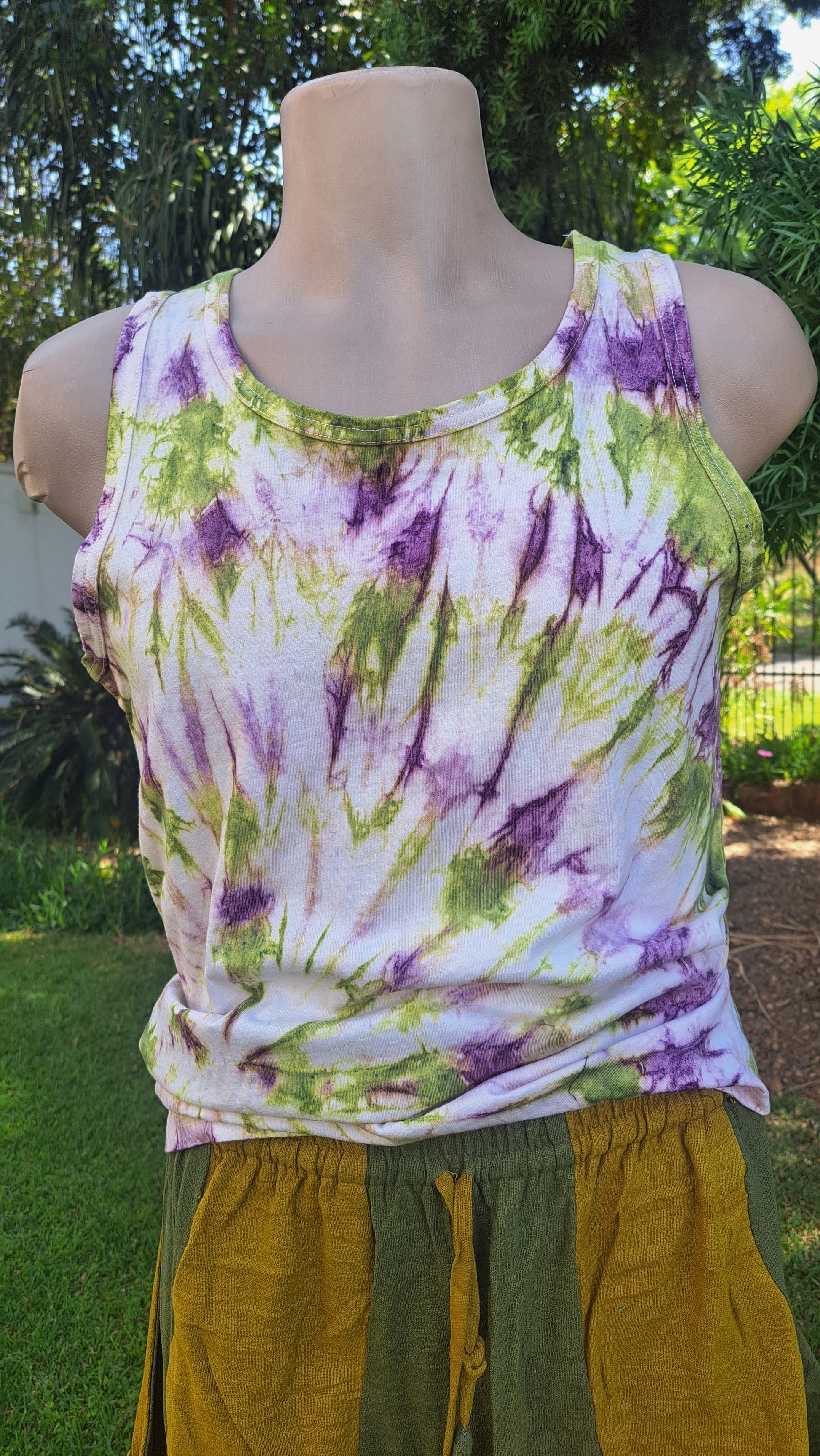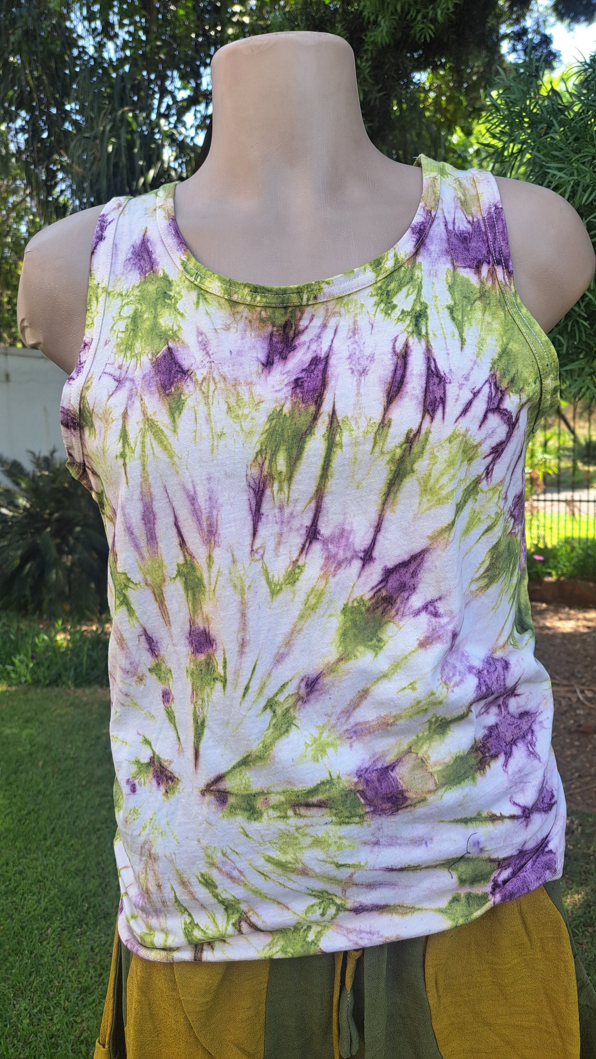 Uv Active tie dye Vest. Watermelon green and purple in a funky firework.