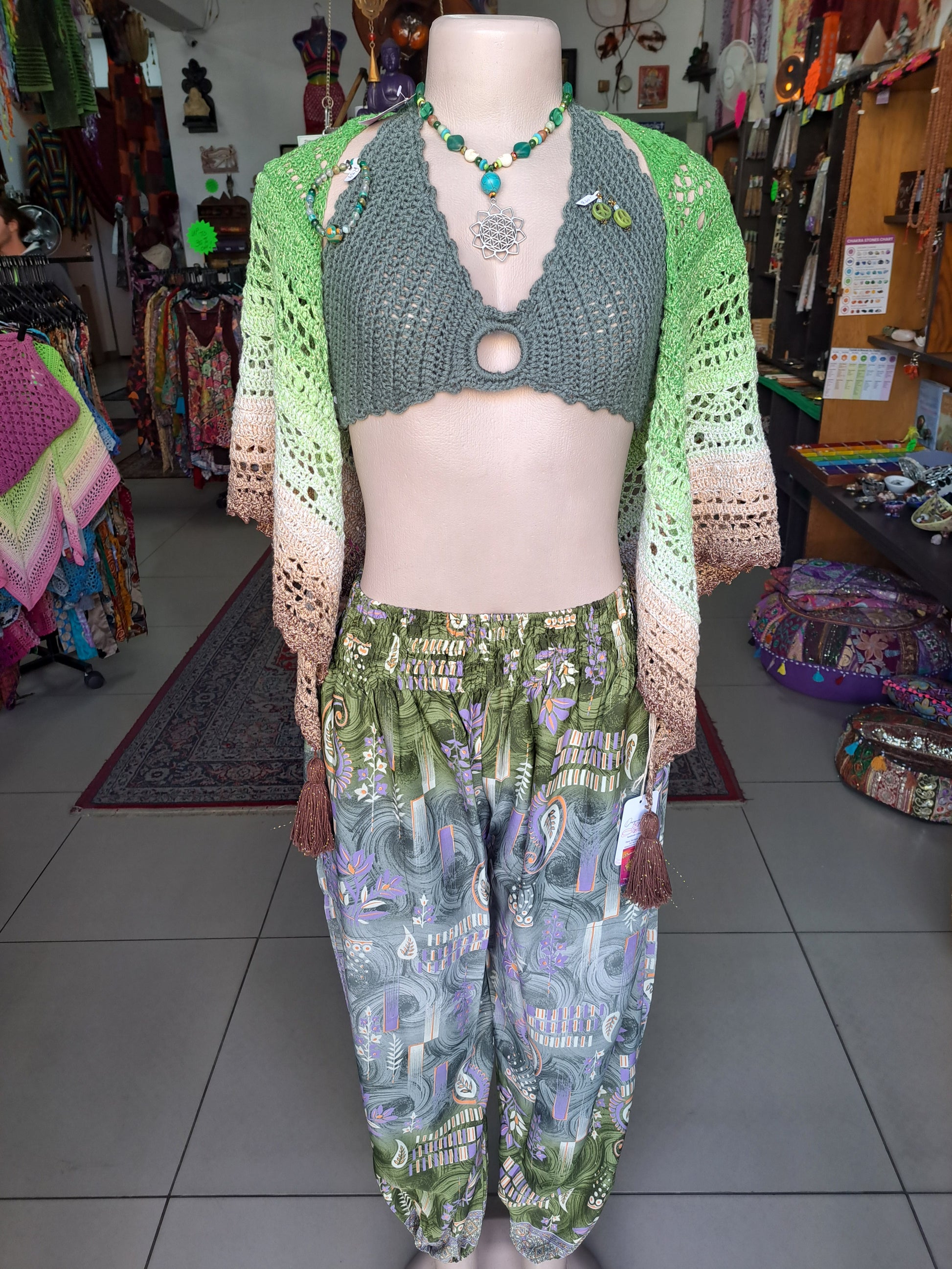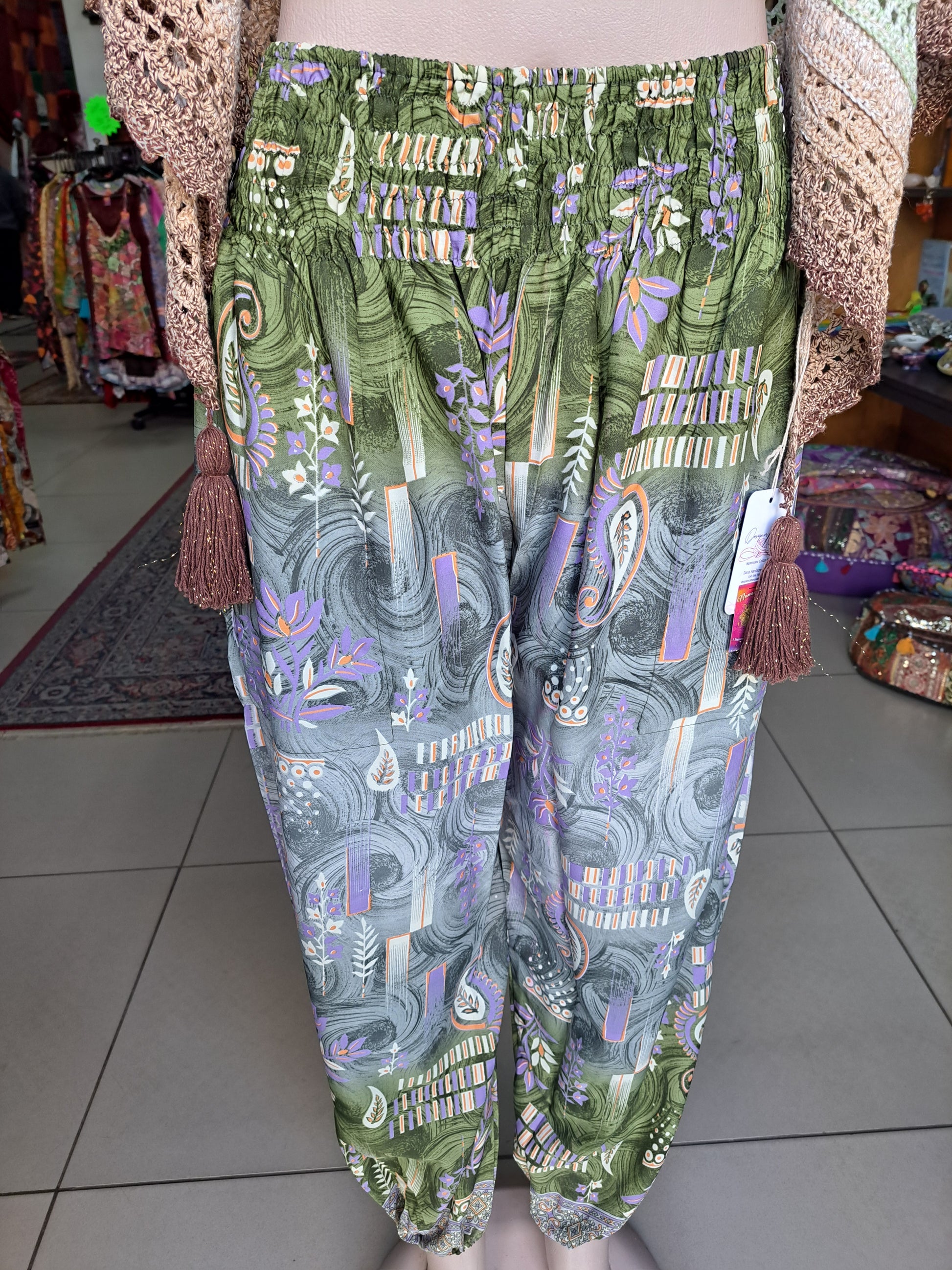 Balloon pants are elasticated ankle pants with pockets and elasticated waists. Pull the ankle to your knee and create a capri for strolls on the beach. Pockets come standard.