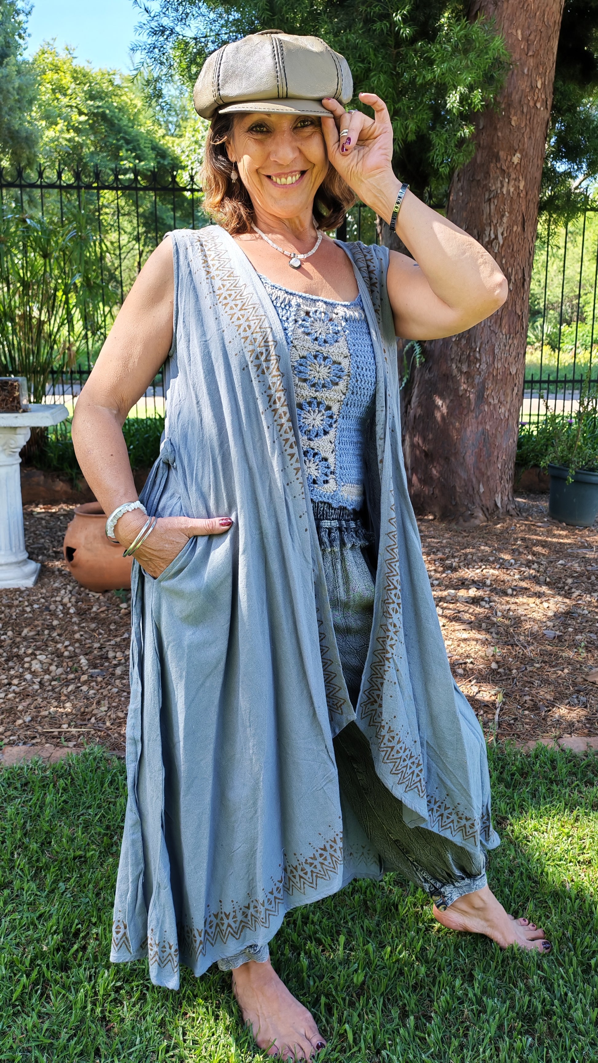 Earthy, rustic, comfortable cotton. Use her as a wrap dress or overcoat. She's a wardrobe winner