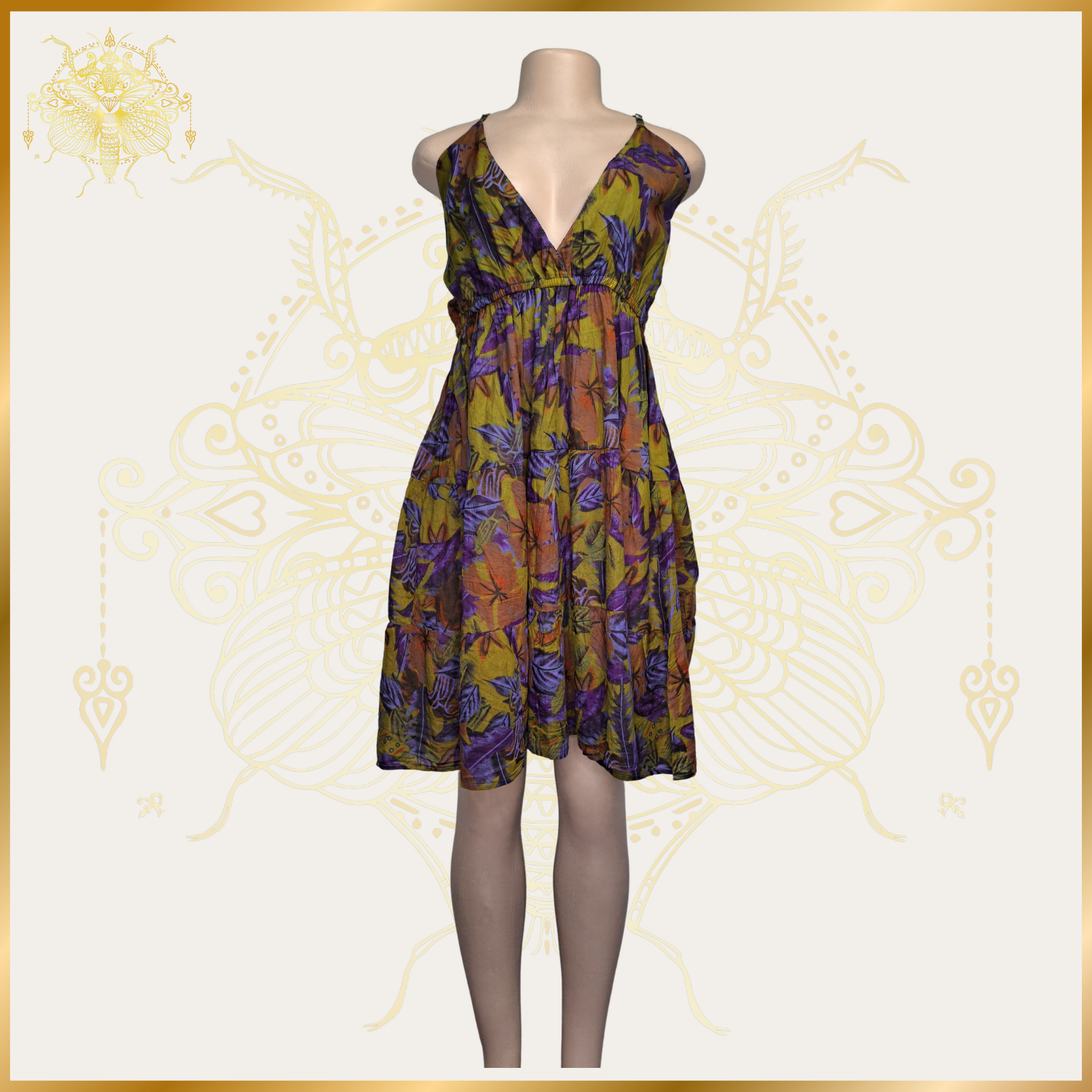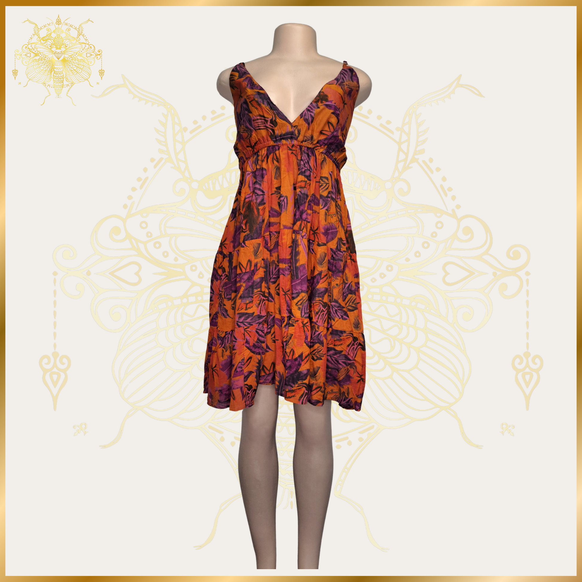 Our 100% cotton Tropicana sundress is comfortable and eye catching with bold prints and vivid colours. The unique overdye process used on this cloth is extensive and is the reason for its incredible blends. Ideal for use during pregnancy as the elasticated back allows some play and the straps can be adjusted. Match it with a denim or our plain colour balloon pants or wear her as a mini for an everyday fun and free look.